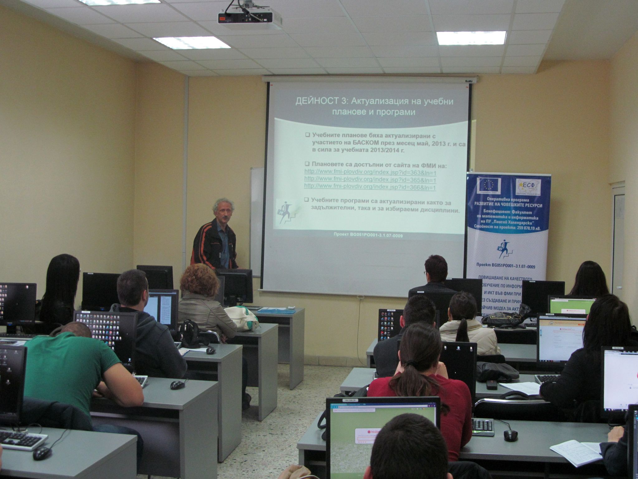 Инф. семинар по проект „Повишаване на качеството на обучение по информатика и ИКТ във ФМИ" 26.04.14