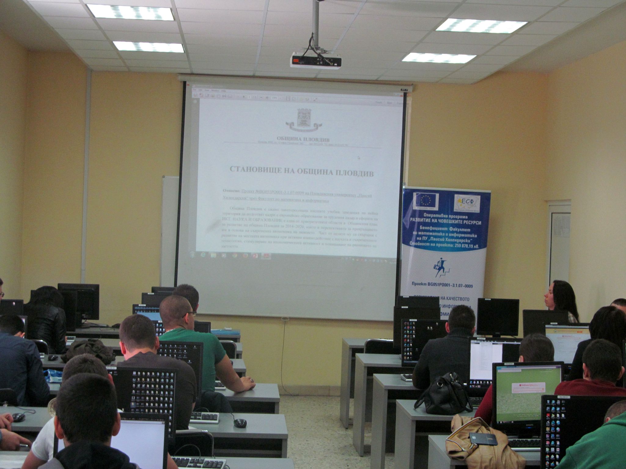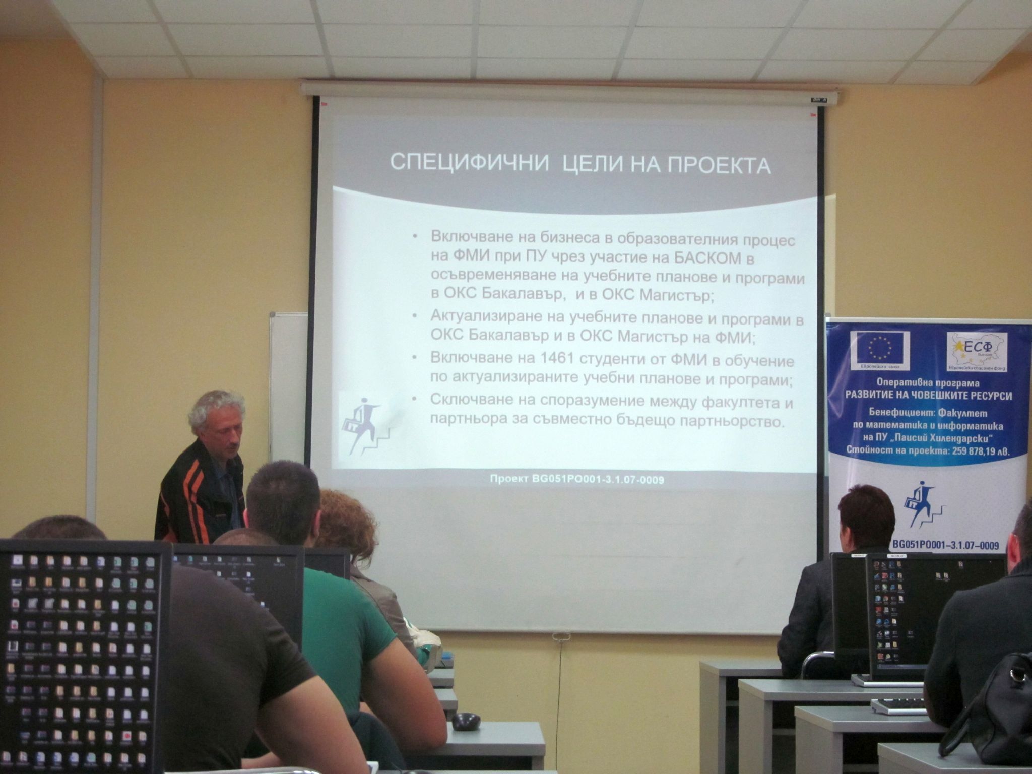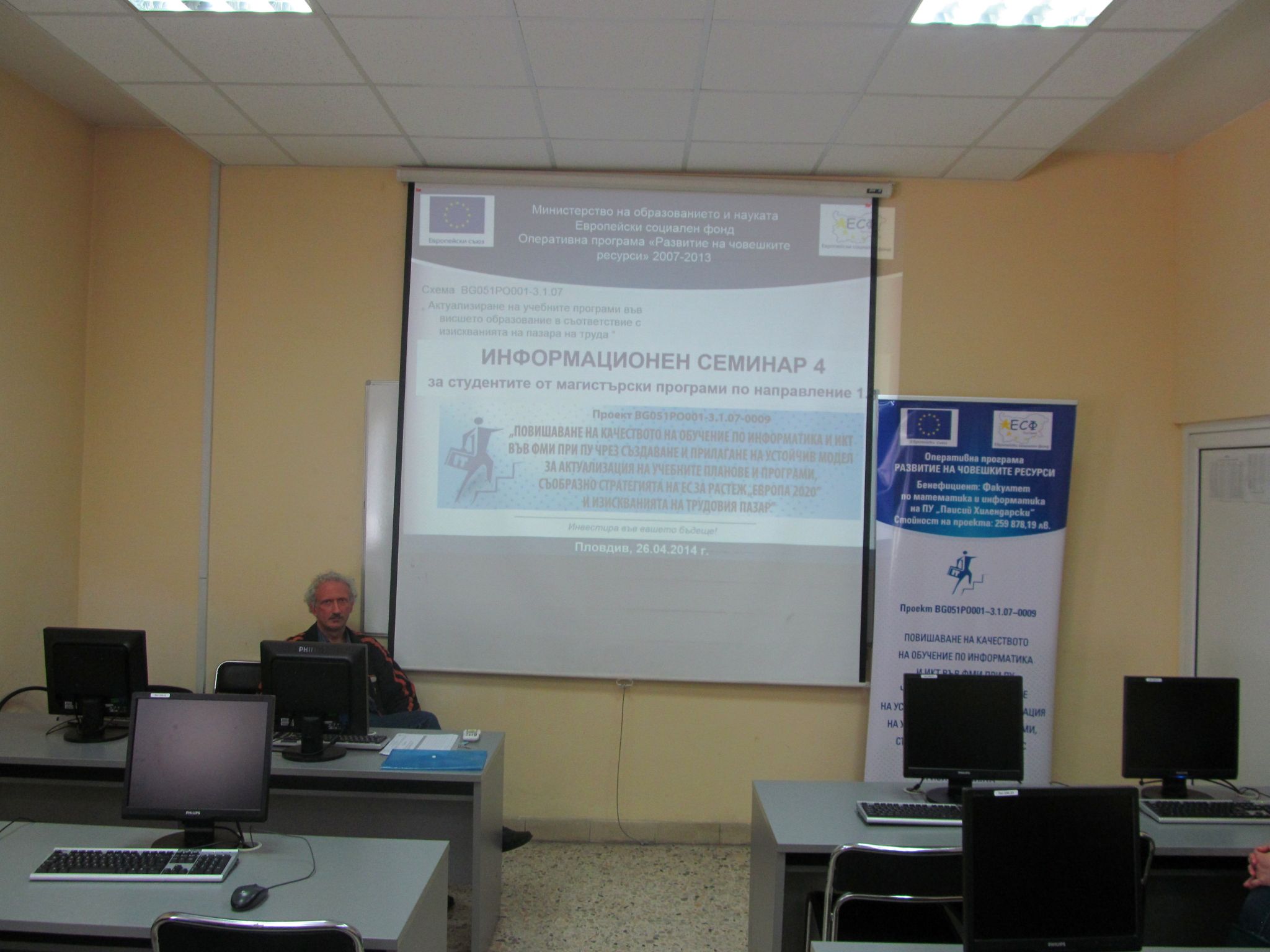 Инф. семинар по проект „Повишаване на качеството на обучение по информатика и ИКТ във ФМИ" 26.04.14