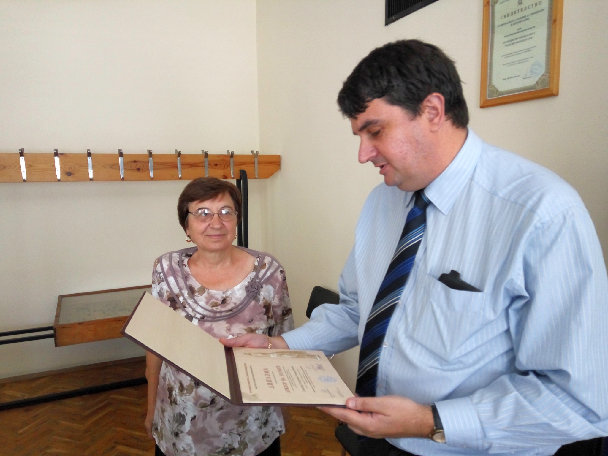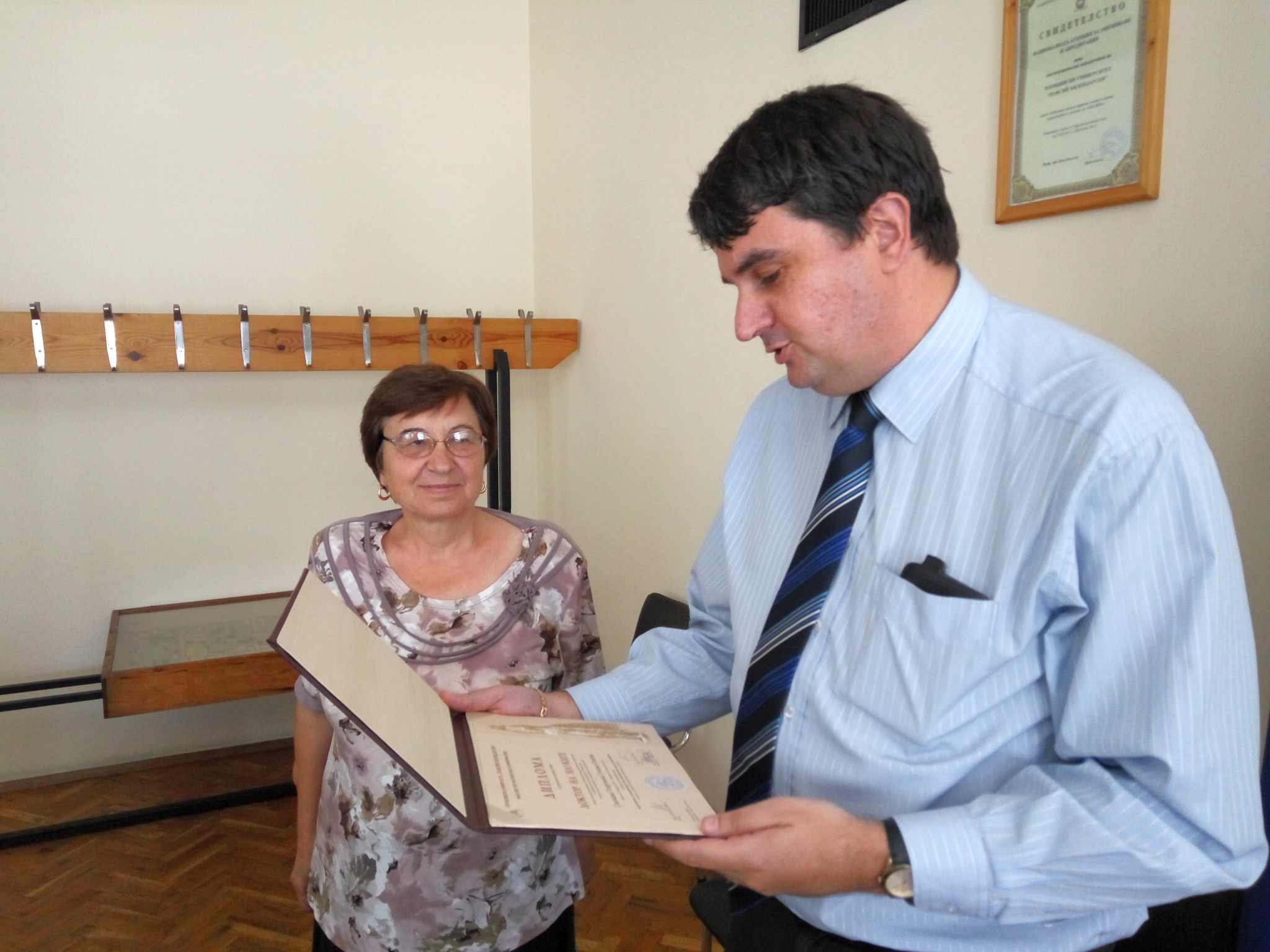 Връчване на дипломи за акад. израстване на проф. д-р Снежана Гочева-Илиева, Зара Данаилова - Стойнова, ас. Христо Христов, Пеньо Георгиев