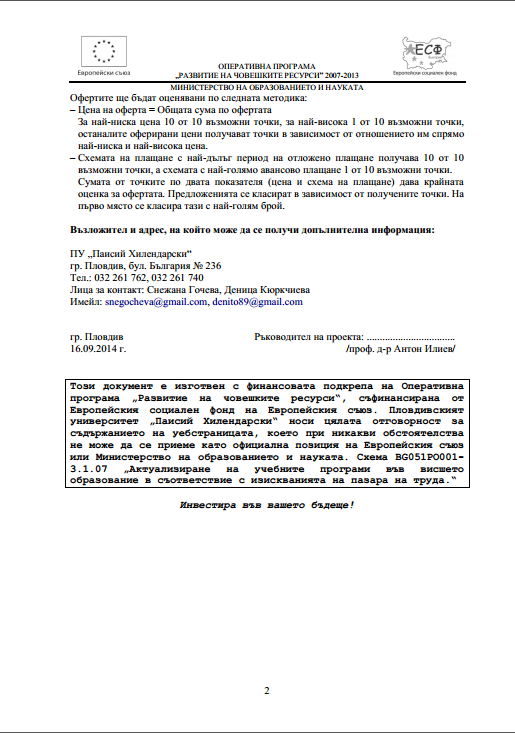 Покана за оферта 16.09.2014