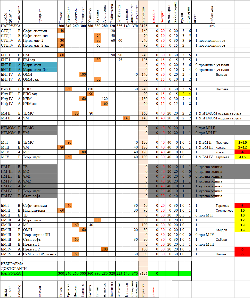 6.1. Членовете на катедрата определиха приемното си време за триместър А на учебната 2016/2017 година.